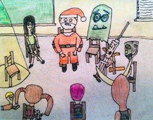 While in rehab last year, I drew a cartoon for a Christmas card to send my friends. It’s me and Santa hanging out with The Devil, Borderline Personality Disorder, an undefined higher power, a Disney-fied syringe full of heroin, myself at age four, an identity issue monster, and two girls that I’m either in love with, trying to fuck, or just looking to get some kind of self-esteem bump out of.