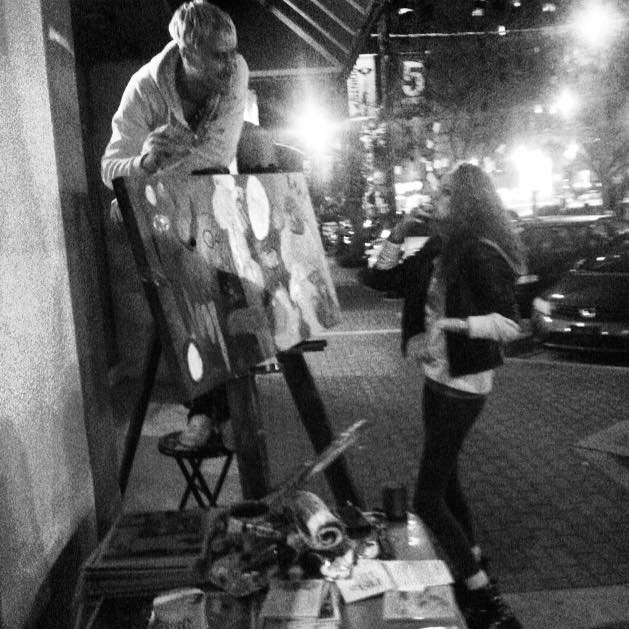 On Saturday night, I was selling prints in front of Rain Dogs. At the end of the night, as I was packing up, somebody rode by on a bike, grabbed my print case, and rode off into the night. I was at the van (parked just a few doors down from Rain Dogs) putting up my easel so I didn’t even see him. Wallis did though and called out to me. We jumped in the van and tried to chase after him but once he had turned the corner, he was gone into the night. We drove around the neighborhood for awhile, hoping to spot him but no luck. I don’t think the guy knew what he was stealing; after all, my prints aren’t exactly the kind of thing you can take to a pawn shop. So I figure he probably ditched the case once he opened it and saw what was inside. I spent a lot of yesterday driving and walking around the neighborhood, checking back alleys and dumpsters but… again – no luck.