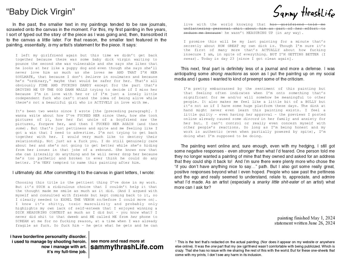 “Baby Dick Virgin” is a 16×20-inch acrylic painting, created by artist Sam North in April 2024 in Sarasota, FL. The full story behind it is featured right here on samnorth.art.