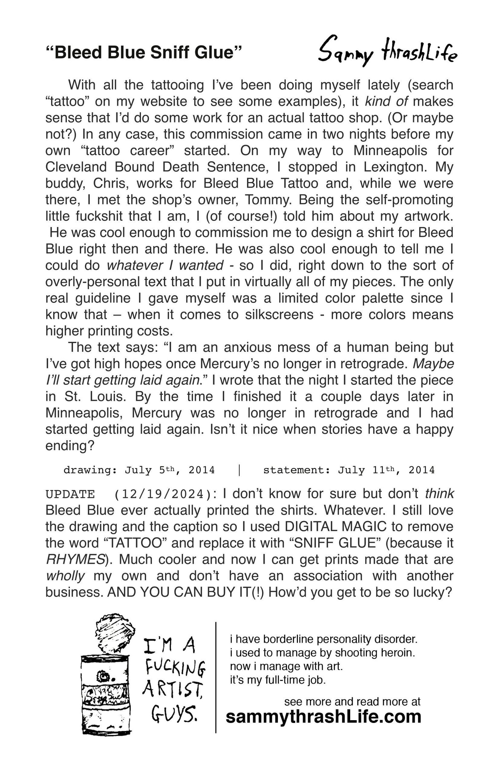 “Bleed Blue Sniff Glue” is a variation on an 11×14-inch alcohol ink drawing, created by artist Sam North in July 2014.