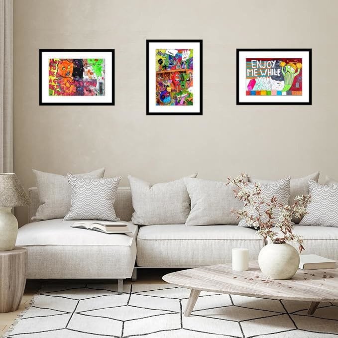 Any frames pictured in product listings are not included.