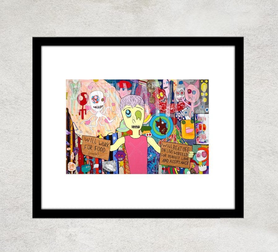 “Motivation (Will Work for Food (maybe) / Will Beat Off on Live Webfeed for Perfect Love and Acceptance)” is a 48×30-inch acrylic painting, created by artist Sam North in Miami, Sarasota, New Port Richey, and Bradenton, FL from October to December 2024. The full story behind it is featured right here on samnorth.art.
