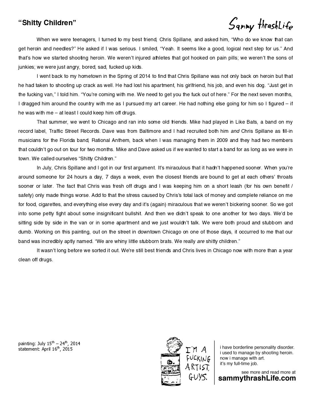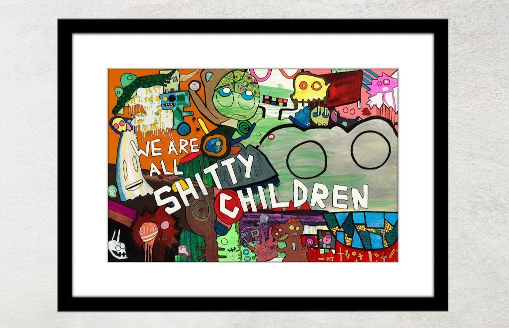 “(We are All) Shitty Children” is a 60×40-inch acrylic painting, created by artist Sam North in July 2014, in Chicago, IL. It was originally featured in his blog entry for August 26th, 2014.