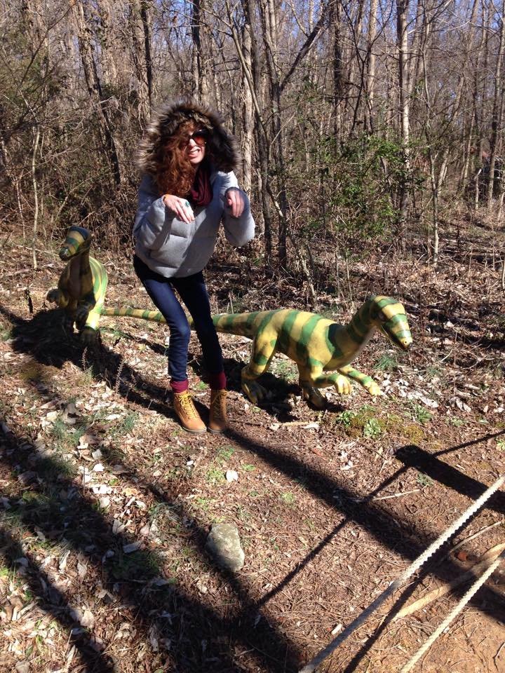 On our way back down south, we saw a sign for Dinosaur World and decided we needed to stop and spend the night so we could go when it opened up in the morning. We were the only people there so we got away with climbing the ropes and taking photos. Wallis makes for a pretty cute dinosaur.