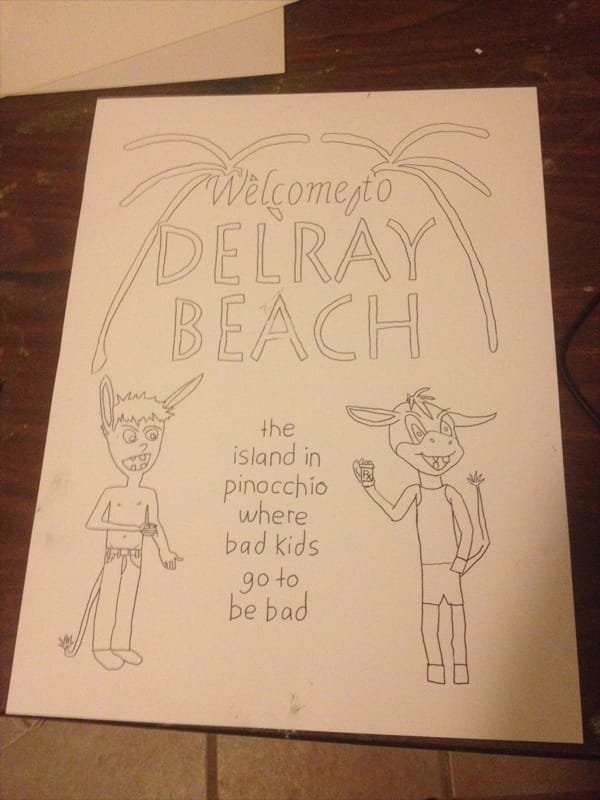 Update (same day): “Welcome to Delray Beach” is now “Greetings from Delray Beach.” Makes more sense to change it for this piece.