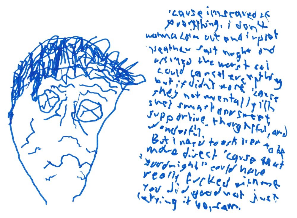 I am back on Adderall [after a month without] and I think the dose is too high now and I’m too in my head and having thoughts like these: [An arrow points at the long, sad, I-wanna-shoot-heroin / my-friends-are-dying journal].